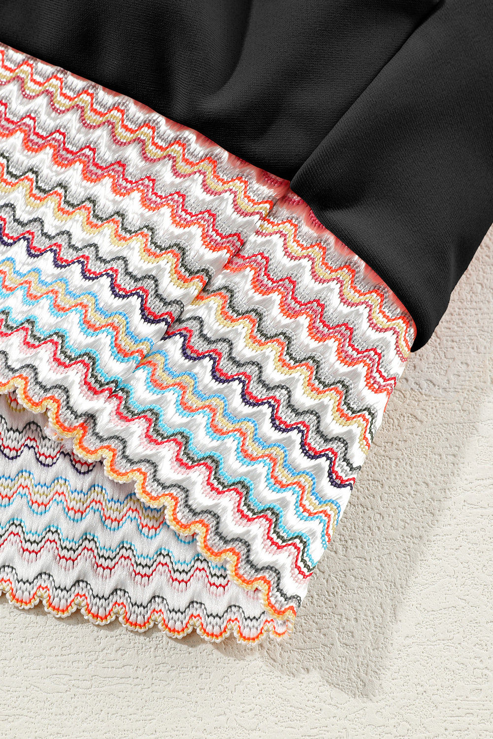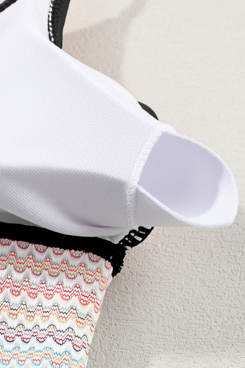 Black Striped Patchwork Spaghetti Strap High Waist Bikini Swimsuit
