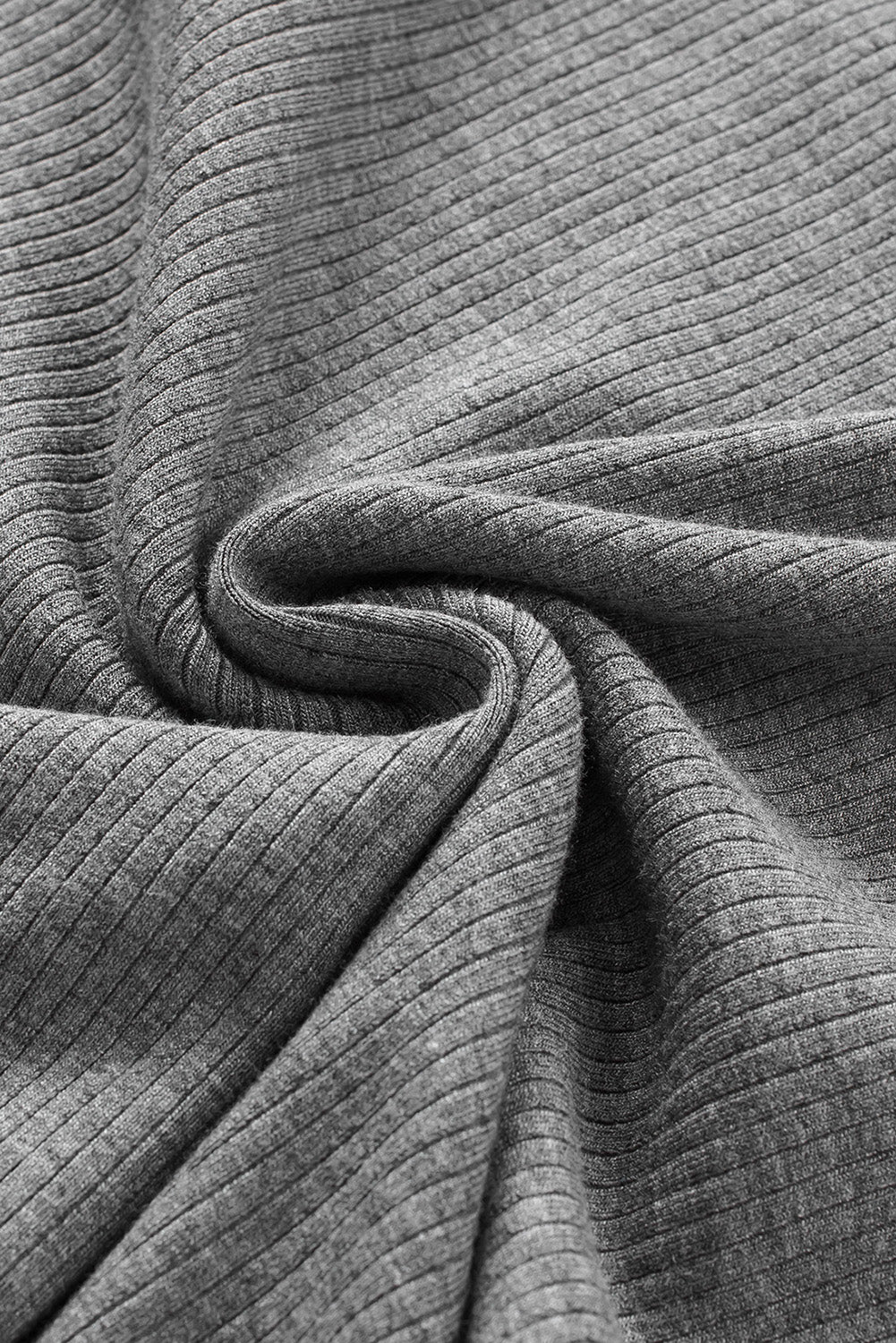 Gray Dotty Mesh Ruffle Sleeve Ribbed Knit Top
