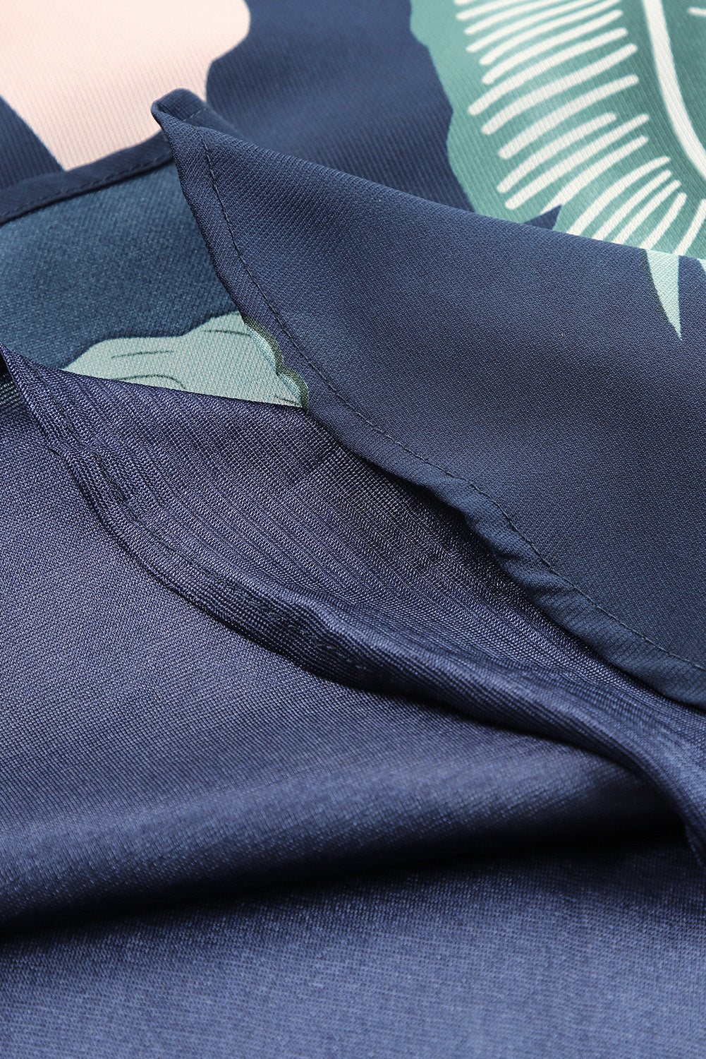 Palm Tree Leaf Print Navy Sleeveless Dress