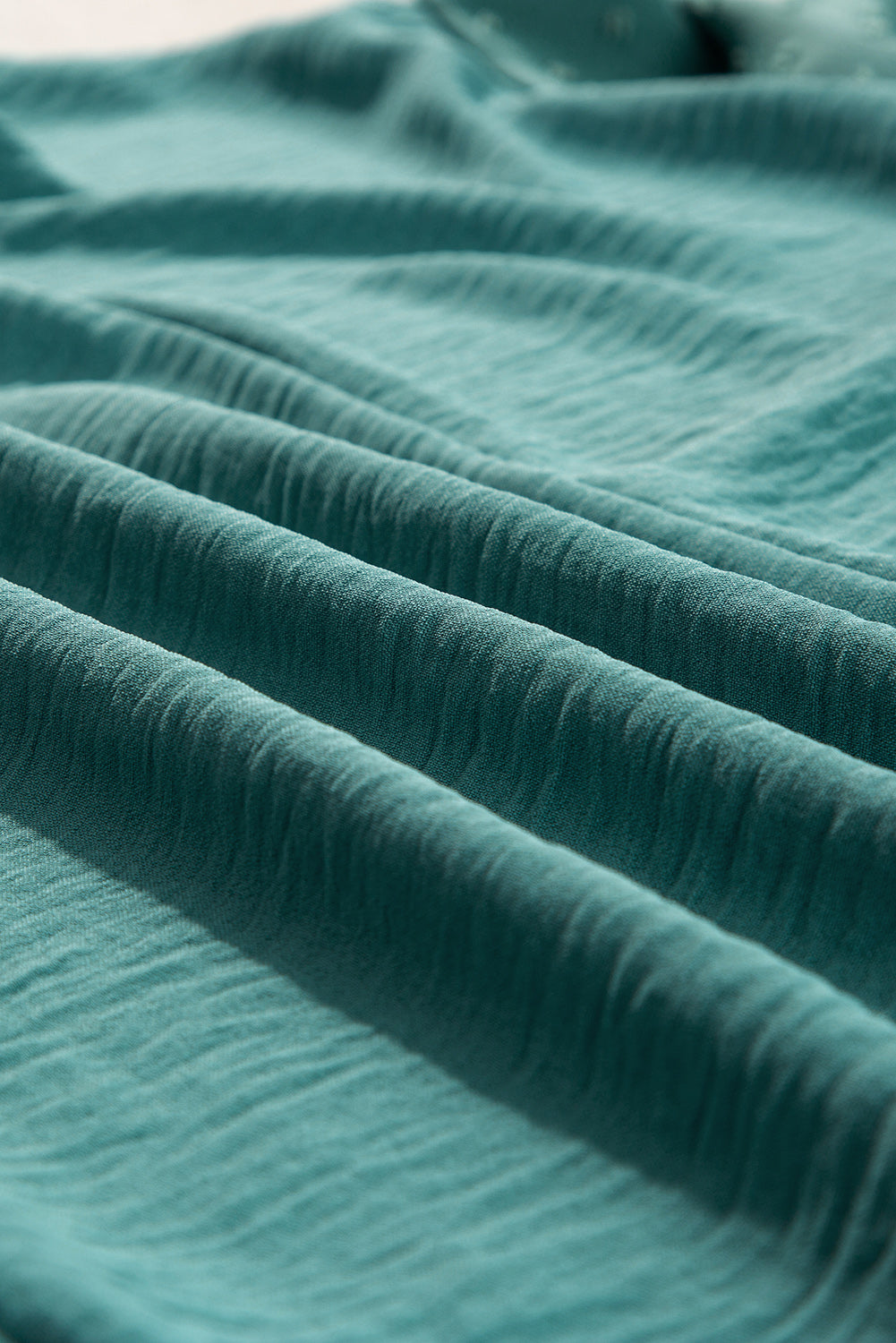 - The swiss dot pattern on the contrasting fabric on the arms adds romantic detail.