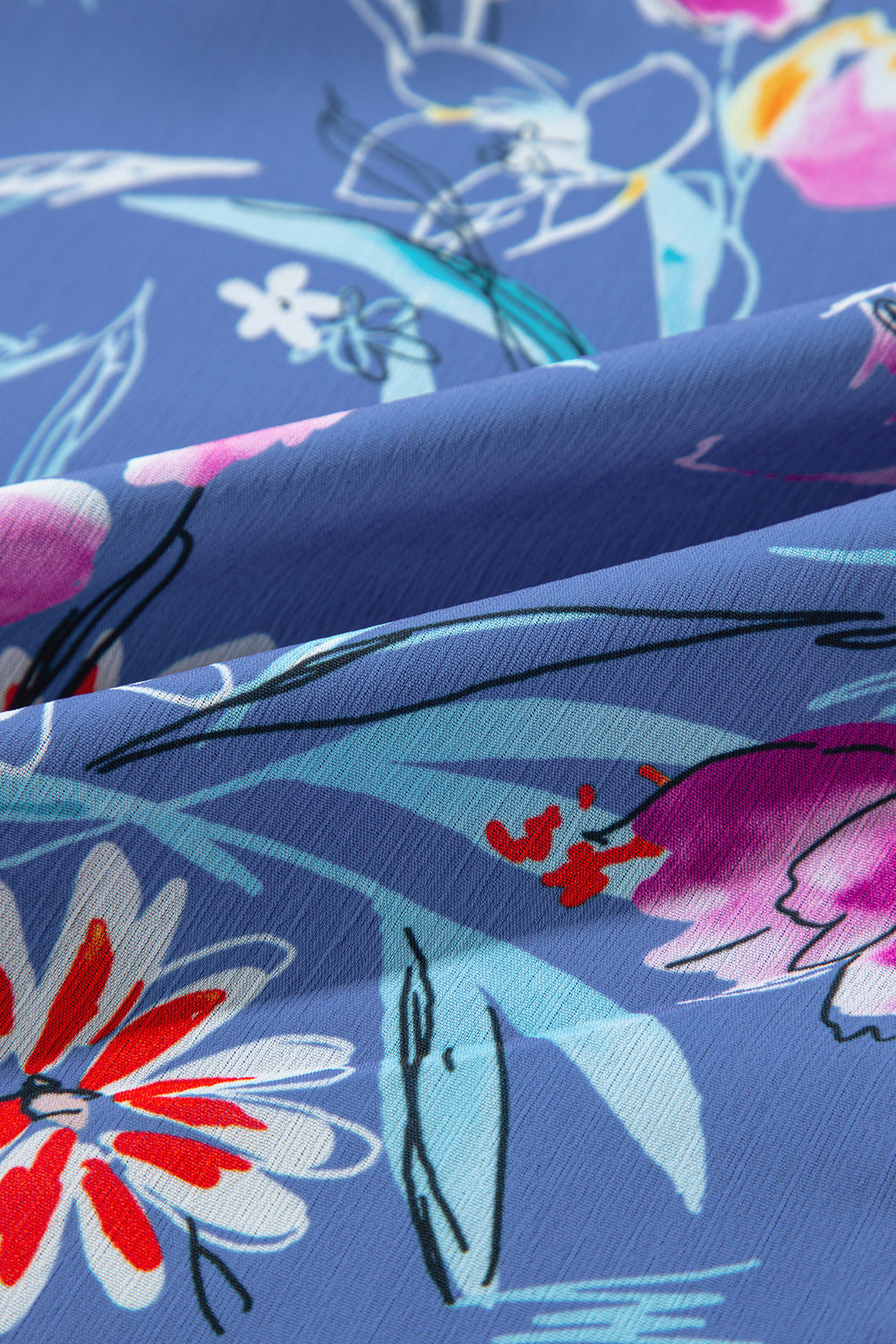 Sky Blue Floral Print Buttoned Neckline Tank Top